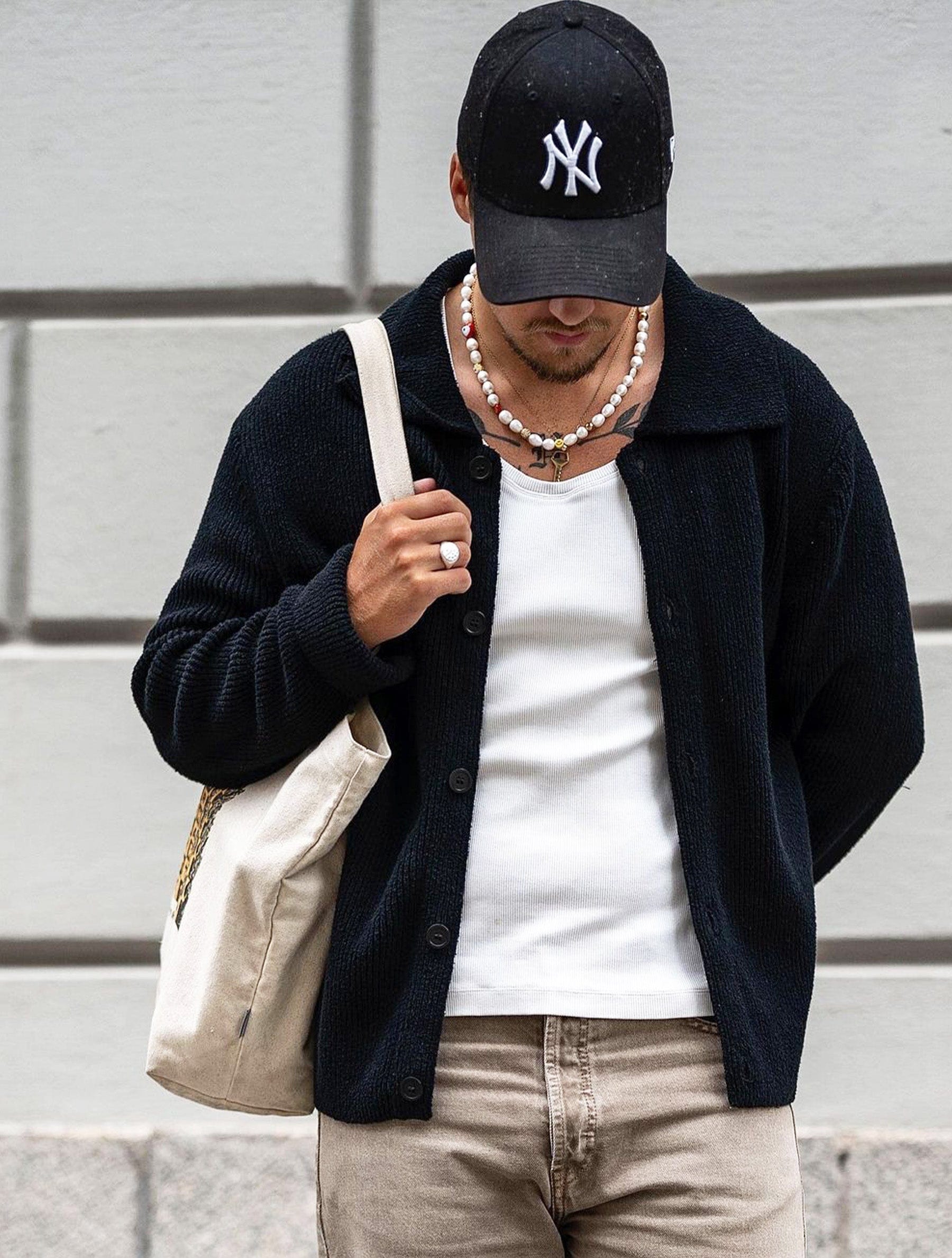 Men's Smiley Face Pearl Necklace with Assorted Beads